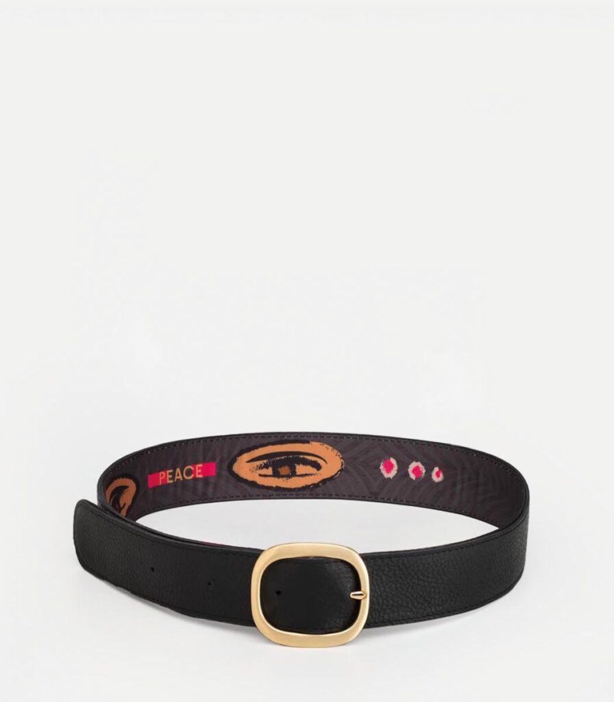 Collezione di cinture realizzate in vacchetta vegetale, foderate con illustrazioni stampate su doppio raso, da utilizzare nei passanti dei pantaloni, o sopra gli abiti, per evidenziare il punto vita.
