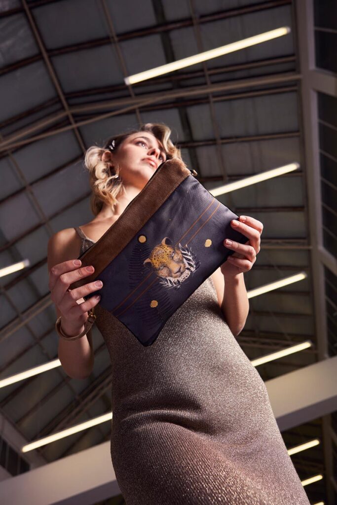Pochette e clutch in pelle bottalata come nella migliore tradizione artigianale italiana, ma anche pochette come quadri, realizzate in velluto o in doppio raso impreziosite dalle opere degli illustratori della nostra Maison. Un’offerta ampia e variegata, accomunata per converso, dall’essenzialità e praticità dei modelli e da un’attenzione specifica per la sostenibilità: modelli cuciti a mano da sartorie sociali e stampe realizzate senza uso di acqua, nel pieno rispetto dell’ambiente e recuperando tagli di pellami da altri modelli. Materiali e ottoneria esclusivamente Made in Italy.