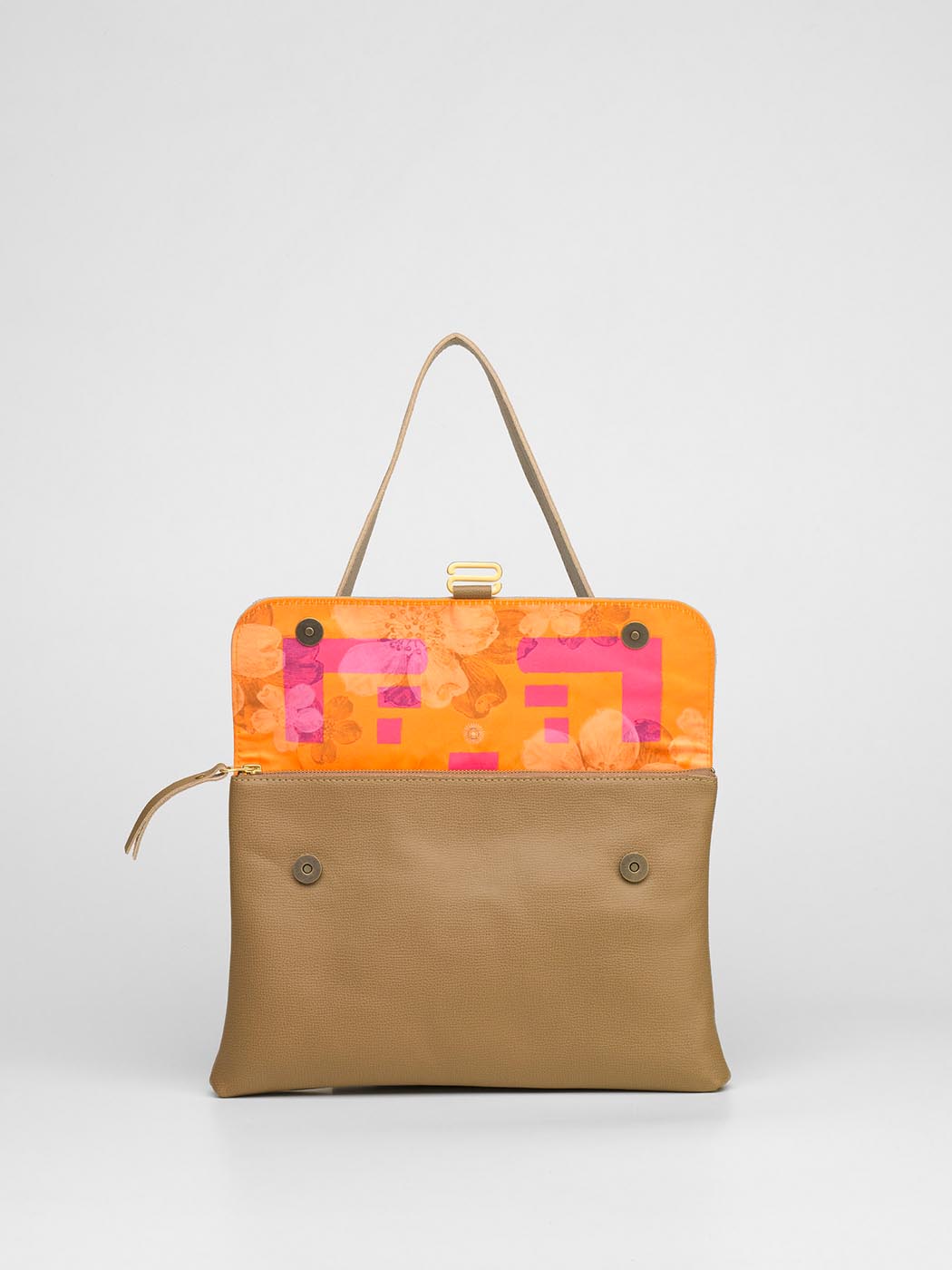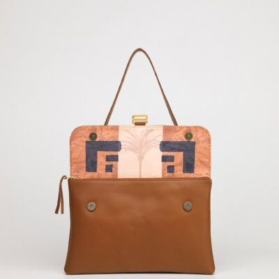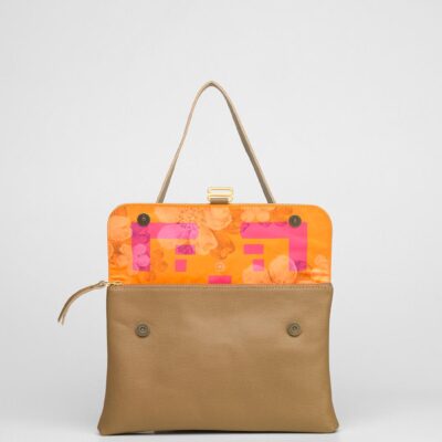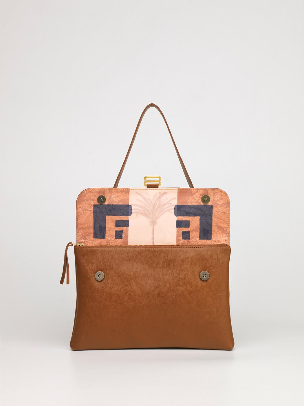 Finiture: manico rimovibile in cuoio lunghezza fissa 65 cm; metalleria finitura oro opaca
