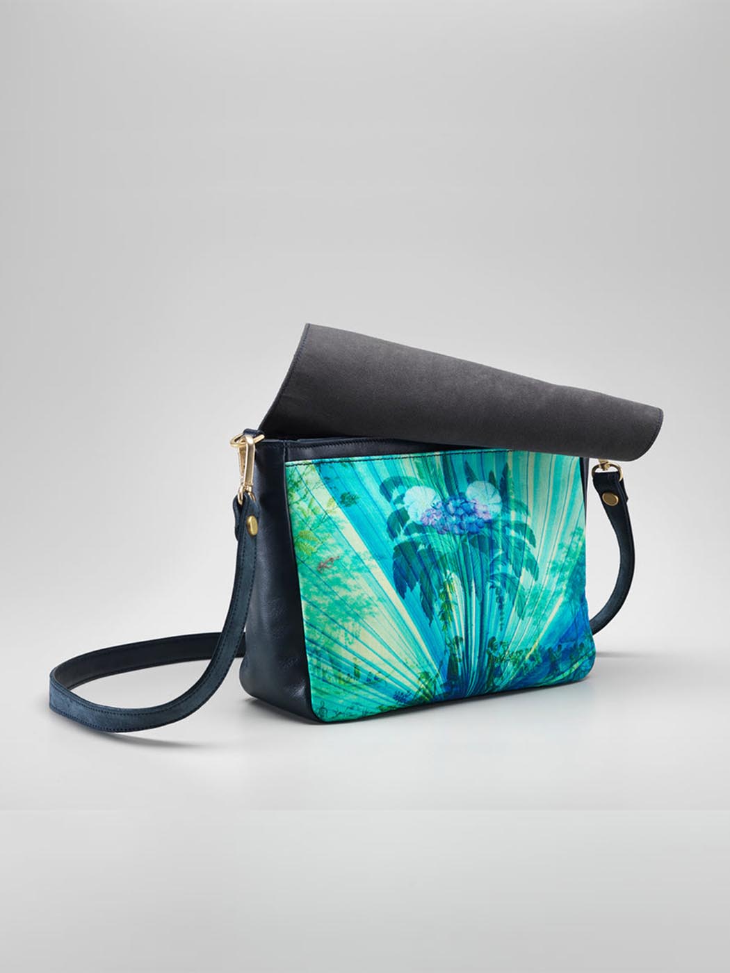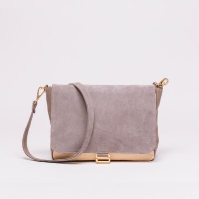 Finiture: tracolla rimovibile in pelle, lunghezza fissa 100 cm; metalleria finitura oro opaca