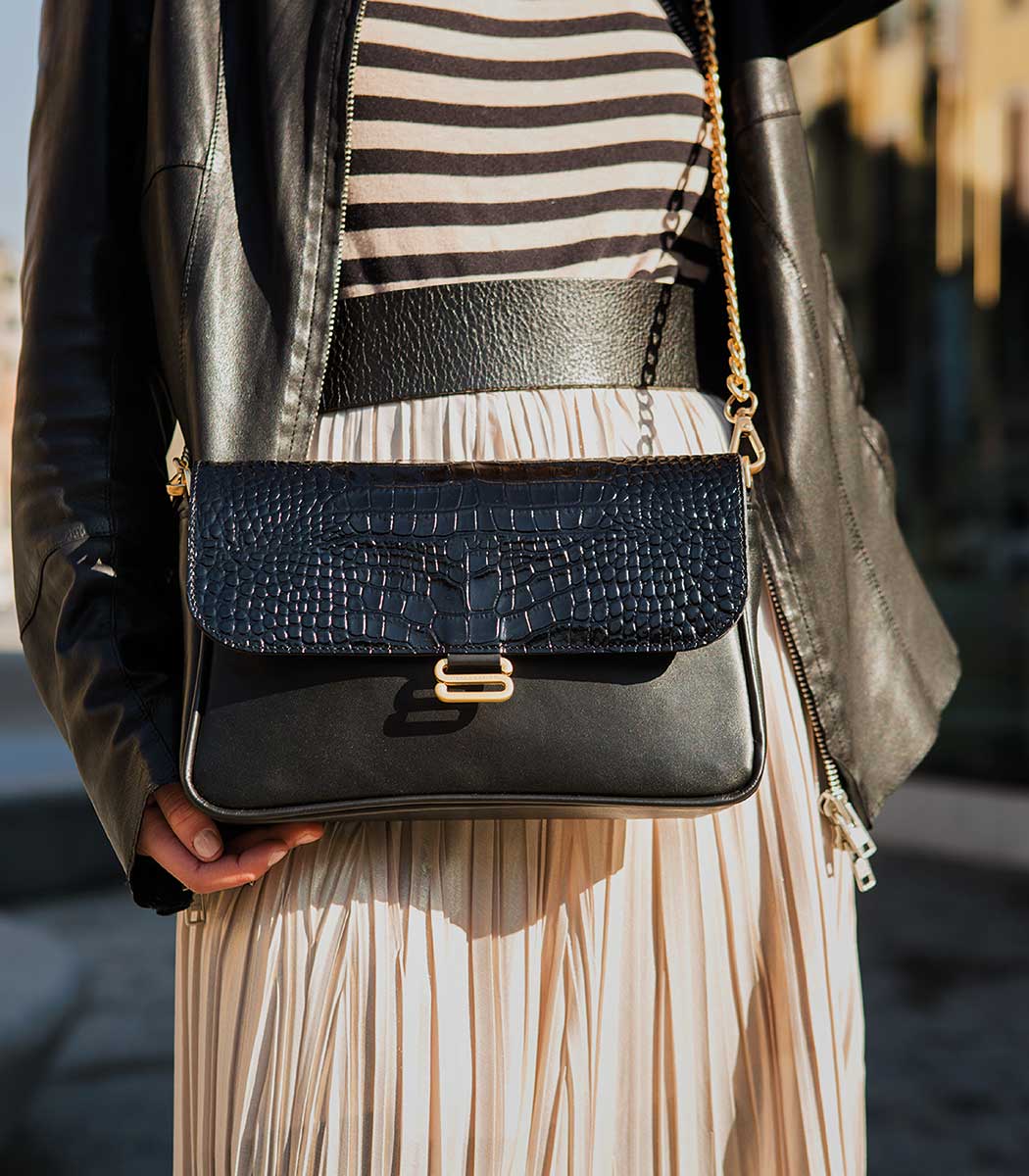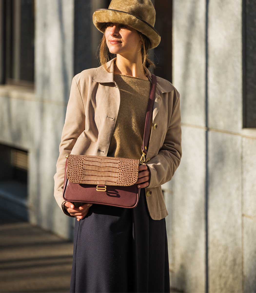 Borsa a tracolla con corpo in nappa pieno fiore e patta in pelle stampata cocco. Una cross body bag elegante, pratica e femminile. Tracolla in pelle regolabile e sostituibile con una delle tracolle opzionali della collezione Maison Siccardi in limited edition, così come le illustrazioni che rivestono l’interno della patta che garantiscono l’unicità di ogni borsa della Maison e un’allure fuori dal tempo.